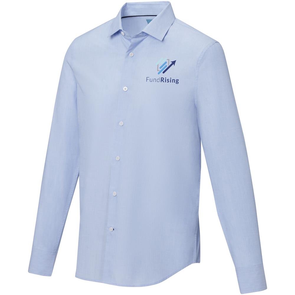 The Cuprite long sleeve men's organic shirt – a sustainable and stylish choice. Made from organic cotton poplin, this shirt combines ethical manufacturing with exceptional comfort. It features a semi-spread collar that offers a more relaxed and versatile look. The contrast-coloured stitching on the sleeve placket and bottom buttonhole placket adds a subtle pop of style.
