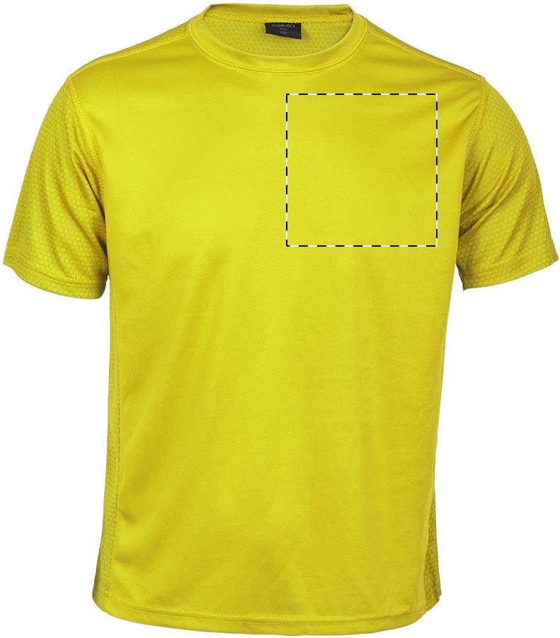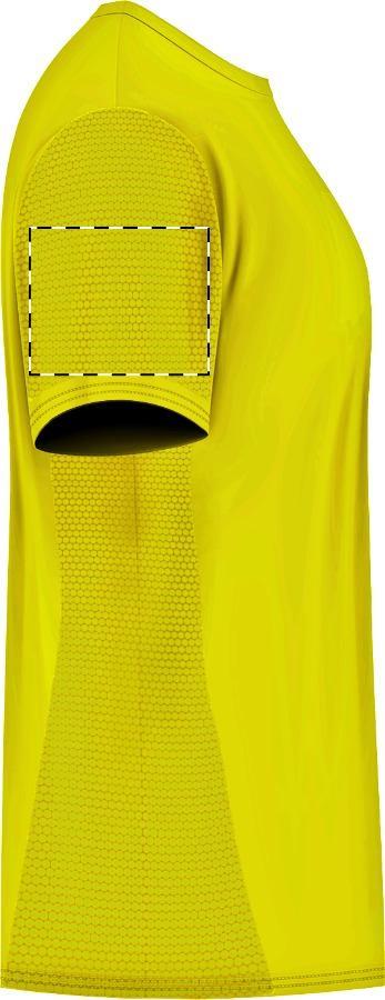 100% polyester, breathable sport T-shirt with hexagonal weave design details. 135 g/m².