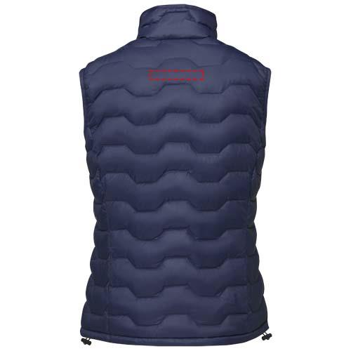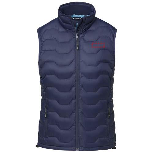 The Epidote women's GRS recycled insulated bodywarmer – a stylish outerwear choice for adventurers. Crafted with precision and care, this bodywarmer is fully GRS certified, making it a more responsible addition to your wardrobe. Designed for comfort and warmth, the honeycomb quilted pattern shows a modern design and enhances insulation, while the GRS certified recycled nylon dull cire 380T woven fabric provides durability and weather resistance. Even the trims and accessories, including zippers, are thoughtfully sourced from recycled materials. Equipped with practical features, the Epidote bodywarmer has front pockets with zippers and an inside left bottom pocket for secure storage. The inner stormflap with chin guard shields you from the elements, while the elastic drawstring with adjustable cord lock in the bottom hem allows for a customised fit. The elastic binding on the hood ensures added protection against cold winds. The responsibly sourced recycled feathers provides warmth without compromising on ethical standards. With GRS certification guaranteeing a 100% certified supply chain, this garment truly represents a more responsible choice. This bodywarmer is designed with a fitted shape for a feminine look.