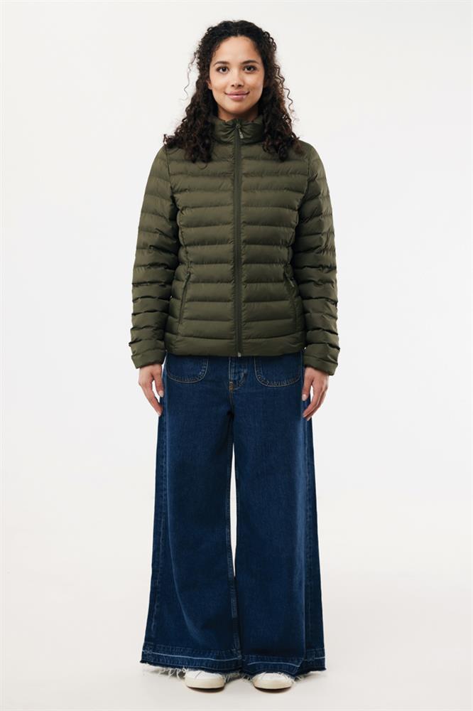 Women’s medium fit padded jacket made from 100% post-consumer recycled polyester. The jacket is fully quilted with 100% recycled polyester filling. It has a reversed zipper at the front and practical zip pockets in the side panel seams. All zippers have extra zip pullers in matching colour for a refined look. The cuffs have elastic binding and all seams at the inside are clean finished with recycled binding. Fluorine/PFAS free water repellent impregnation. The use of genuine recycled fabric materials and environmental impact claims are guaranteed, by using the AWARE™ disruptive physical tracer and blockchain technology. By scanning the QR code, you will gain access to a dedicated digital passport. 2% of proceeds of each sold product will be donated to Water.org. This product is OEKO-TEX® STANDARD 100 certified. The Maiko padded jacket is also available in men fit.