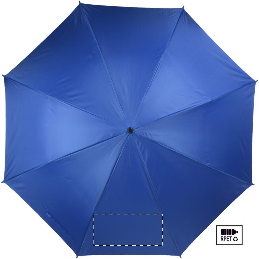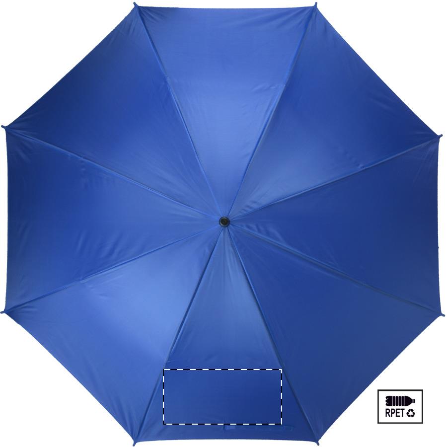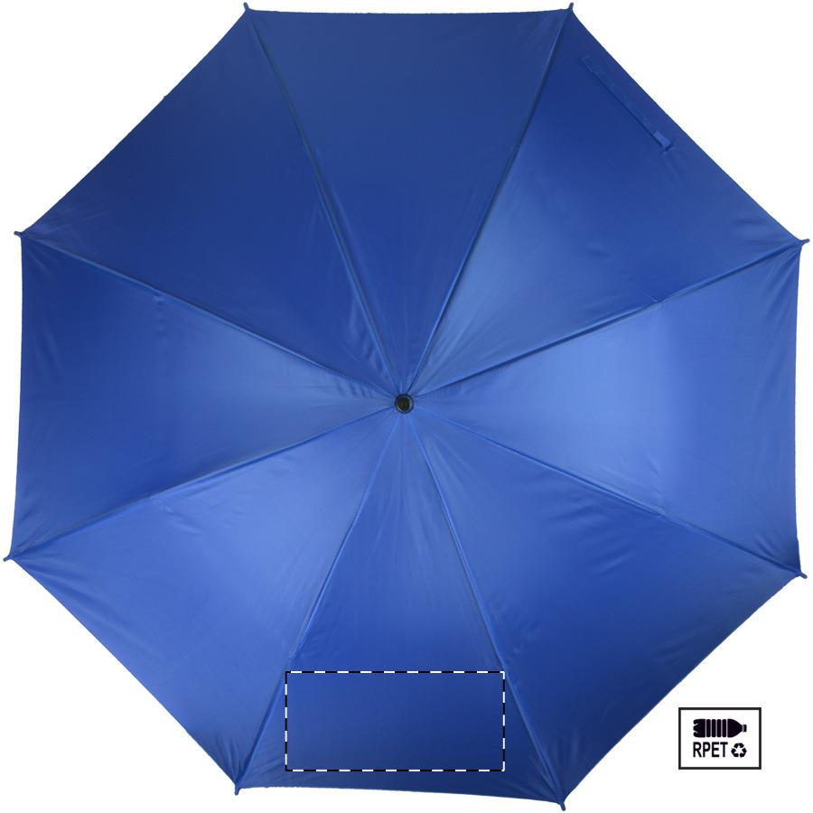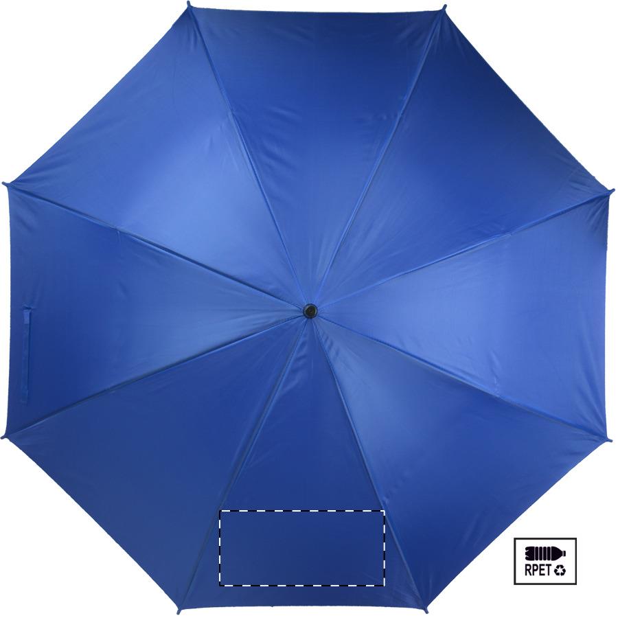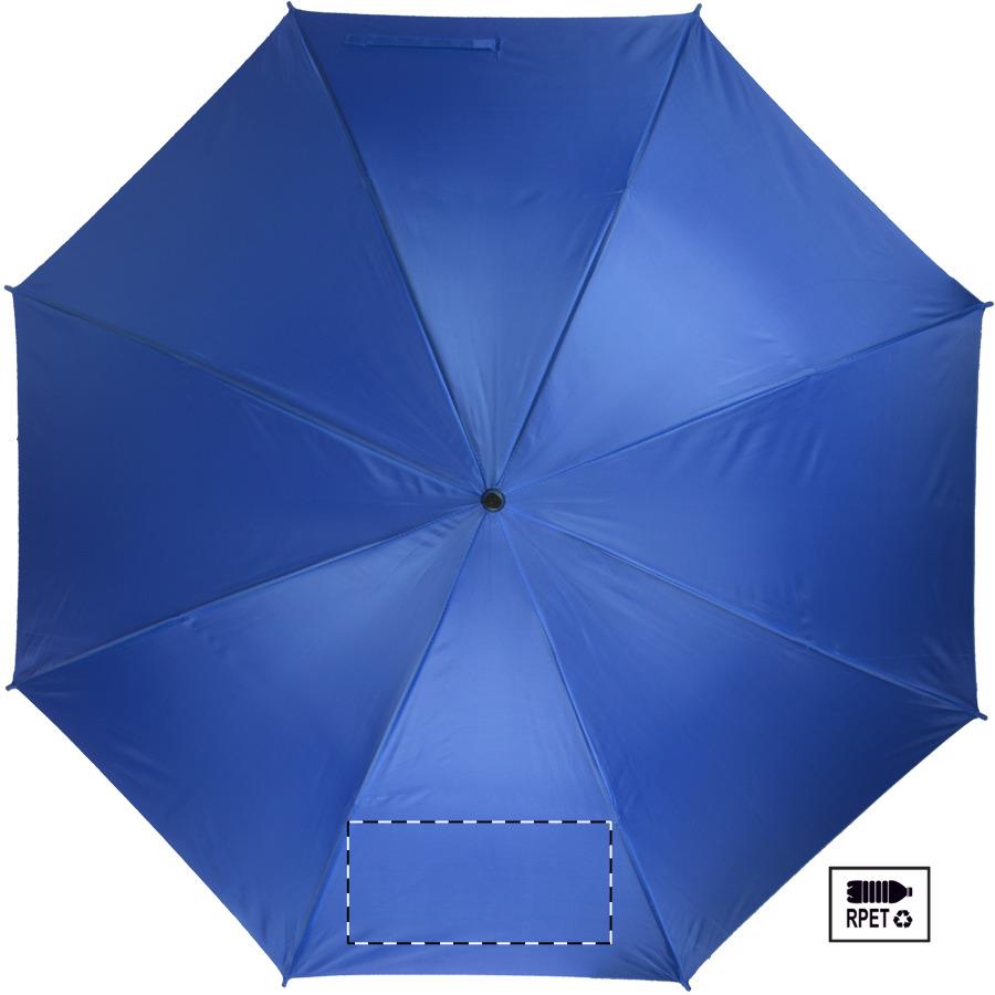 Automatic umbrella with 8 panels, metal frame, wooden shaft, handle and tips. 190T RPET pongee. With distinctive RPET label.