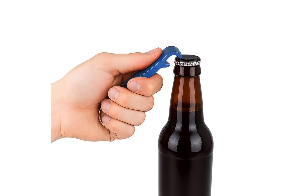 3-in-1-Schlüsselanhänger aus Aluminium mit Flaschenöffner, Handyhalter und abnehmbarer Einkaufswagenchip, kompatibel mit den meisten westeuropäischen Einkaufswagen. Ein kompaktes und praktisches Werbegeschenk.