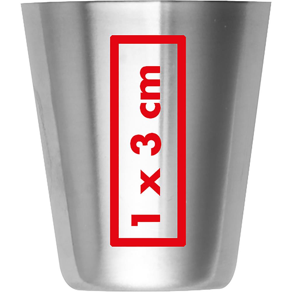 Set mit vier Schnapspinnchen (je 30ml) aus Edelstahl in einem praktischen Etui aus Kunstleder. Ihre Werbung lasern wir auf die Becher.