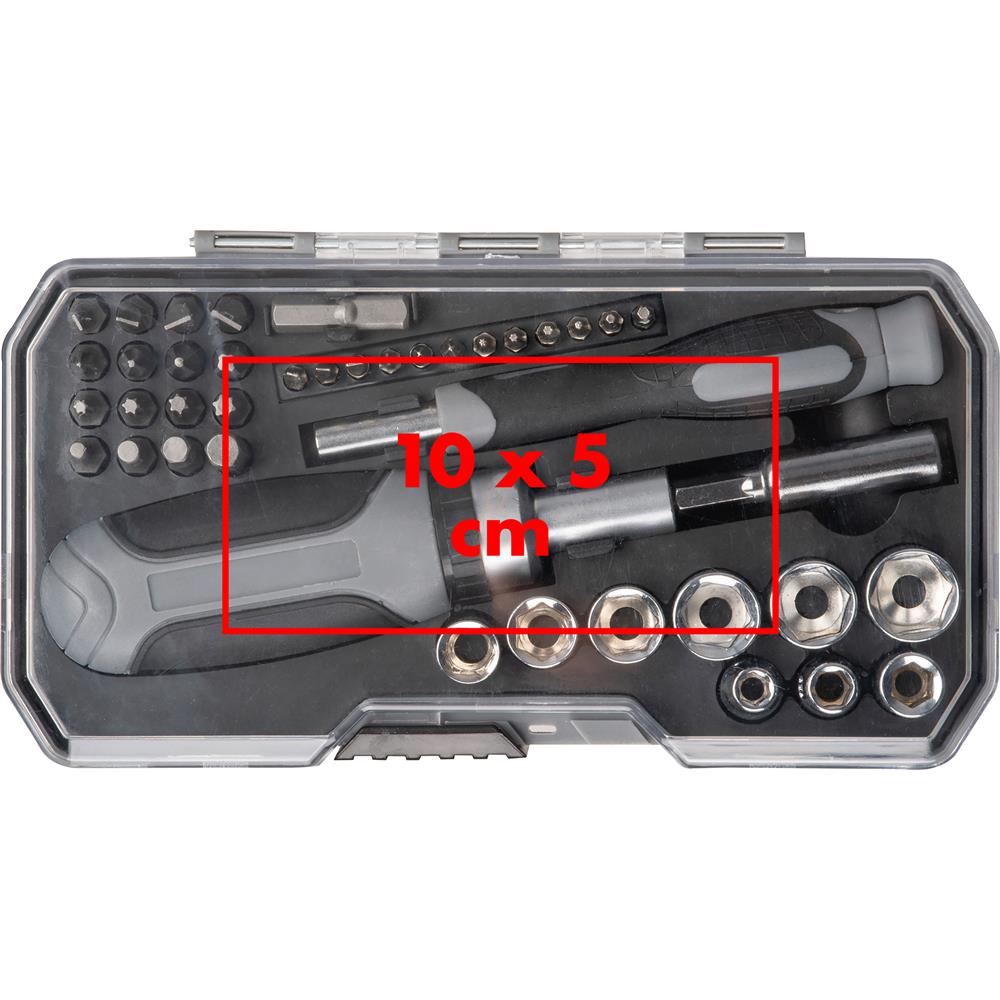 41 teiliges Werkzeugset inkl. Ratsche und einem praktischen Aufbewahrungskoffer. Ihre Werbung wird auf den Deckel gedruckt.