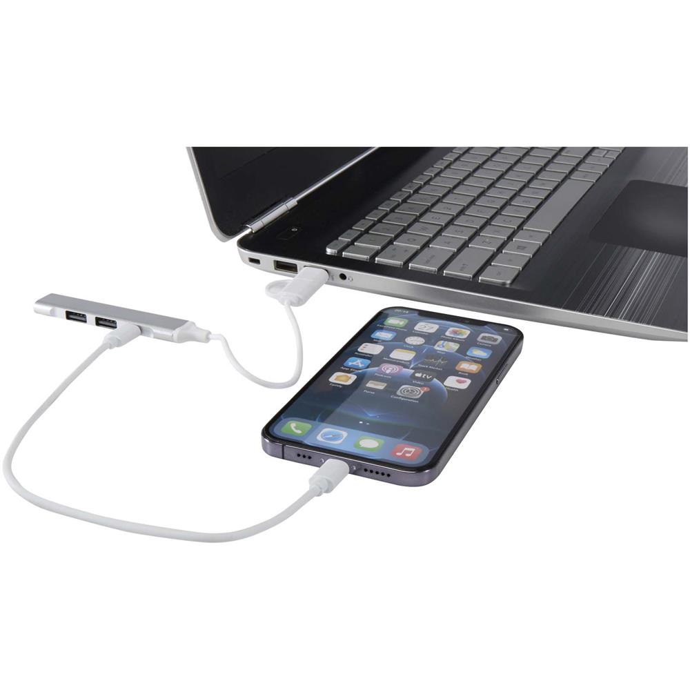 Der Alkaid 4-Port-Hub aus recyceltem Aluminium ist eine vielseitige Lösung für Ihre Konnektivitätsanforderungen. Mit sowohl USB-A- als auch Type-C-Eingangsanschlüssen bietet er 1× Type-C- und 3× USB-A-Ausgänge, sodass Sie mehrere Geräte anschließen und Daten mit Geschwindigkeiten von bis zu 480 Mbps übertragen können. Ideal, um die Anschlussmöglichkeiten Ihres Laptops oder Desktops zu erweitern.