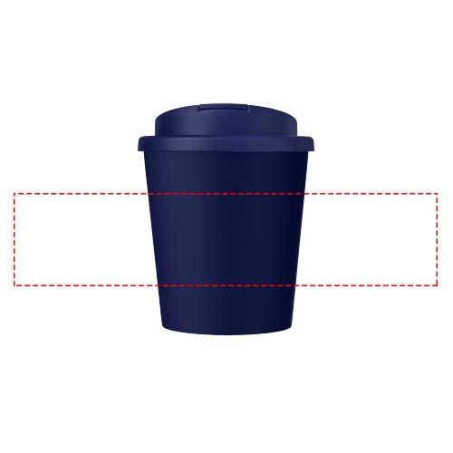 Doppelwandiger Isolierbecher mit einem drehbaren, auslaufsicheren Deckel. Geschlossene Befestigungsclips am Deckel verhindern das Verschütten, und der Becher wird ohne Silikon als vollständig recycelbar hergestellt. Der komplette Becher inkl. Deckel besteht zu 75% aus recyceltem Material: ein recycelter Becher mit schwarzer Innenwand und ein Standarddeckel. Die Schattierungen von Schwarz oder Weiß können variieren, und die weiße Variante hat aufgrund der Beschaffenheit des recycelten Materials einen strukturierten Farbeffekt. EN12875-1 konform; spülmaschinen- und mikrowellenfest. Das Fassungsvermögen beträgt 250 ml. Verpackt in einem recycelten PE-Kunststoffbeutel. Hergestellt in UK. BPA-frei.