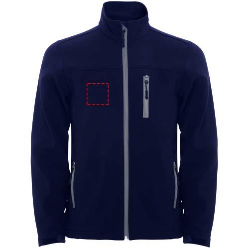2-Lagen-Softshell. Umgekehrter, versiegelter Effekt-Reißverschluss mit passendem Kinnschutz und Zipper. Drei Reißverschlusstaschen mit passendem Zipper. Klettverschlüsse an den Ärmelbündchen. Verstellbarer Saum mit elastischem Kordelzug und Stoppern. 1000 mm Wassersäule. Winddichtes Material. Das Model ist 129 cm groß und trägt Größe 5/6.