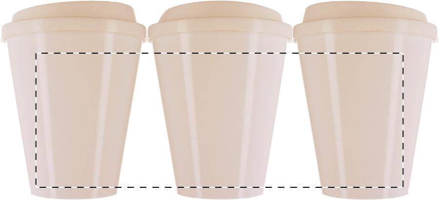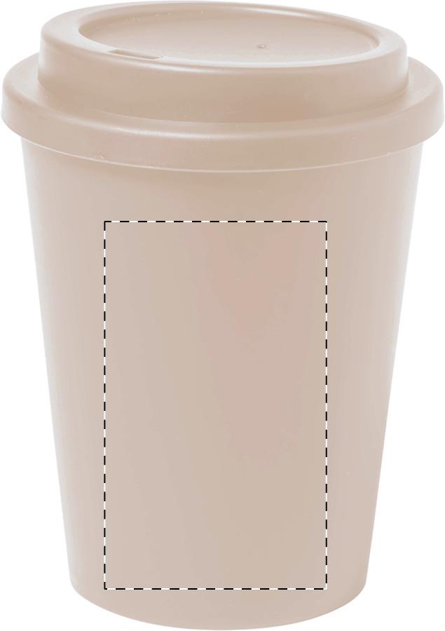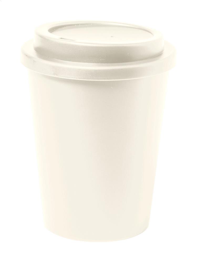 Doppelwandiger Thermobecher aus PP-Kunststoff mit Trinkdeckel. Füllmenge: 300 ml.