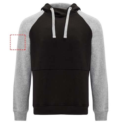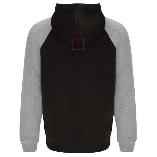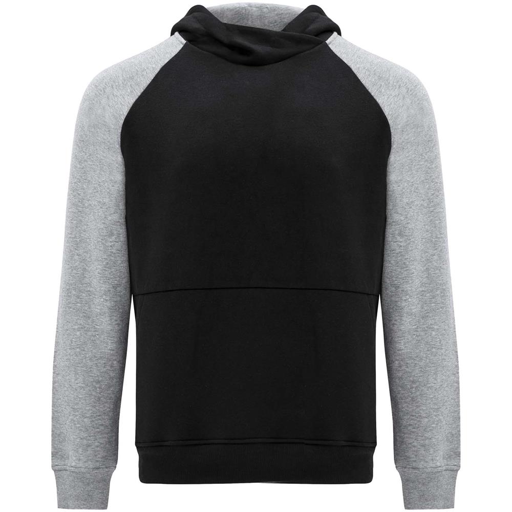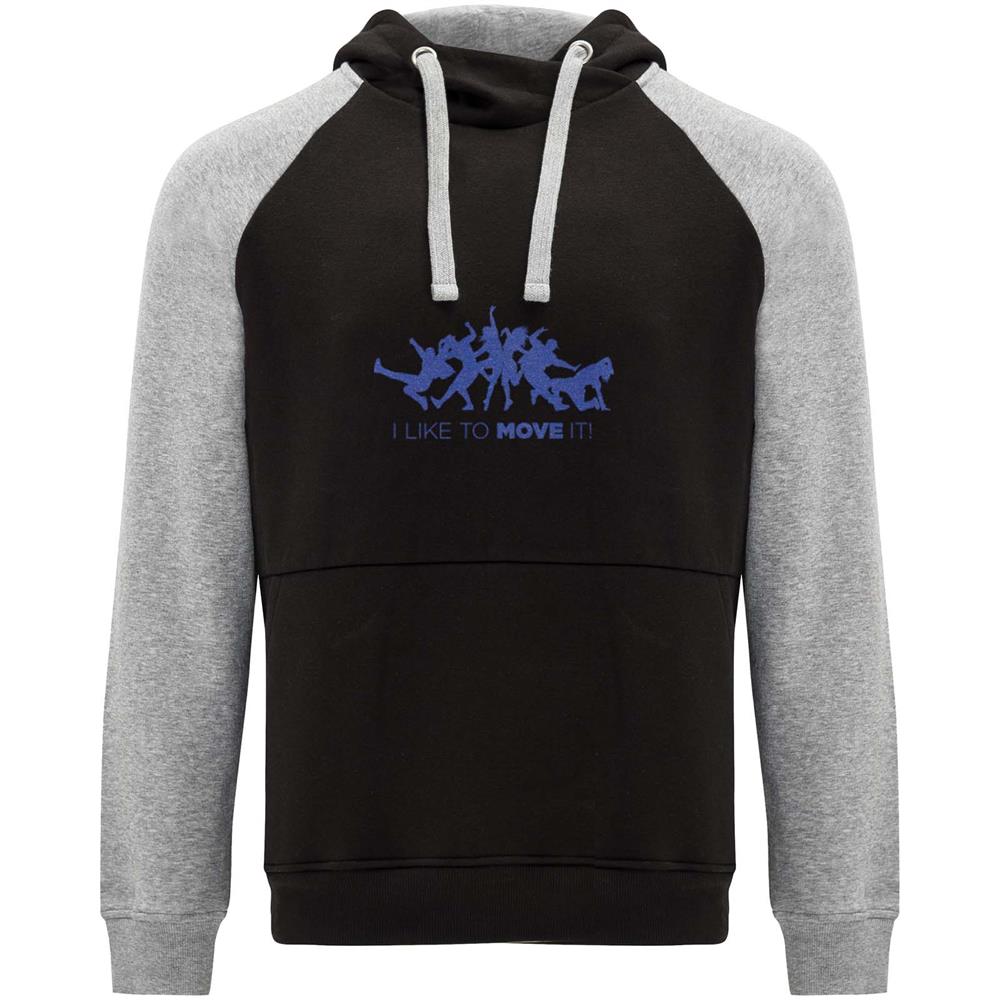 Zweifarbiger Unisex Kapuzenpulli. Kapuze mit gekreuztem Kragen und Metallösen. Innenkapuze, Kordelzug und Raglanärmel in Kontrastfarbe. Kängurutasche. Bündchen und Saum aus elastischem 1×1-Rippstrick. Abnehmbares Etikett.