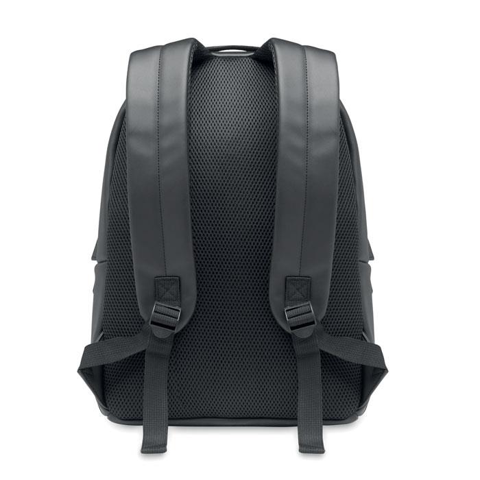Rucksack aus weichem PU. 15'''' Laptop Fach. Fronttasche mit Reißverschluss. Gepolsterter Rücken und verstärkter Boden. Futter aus 210D RPET.