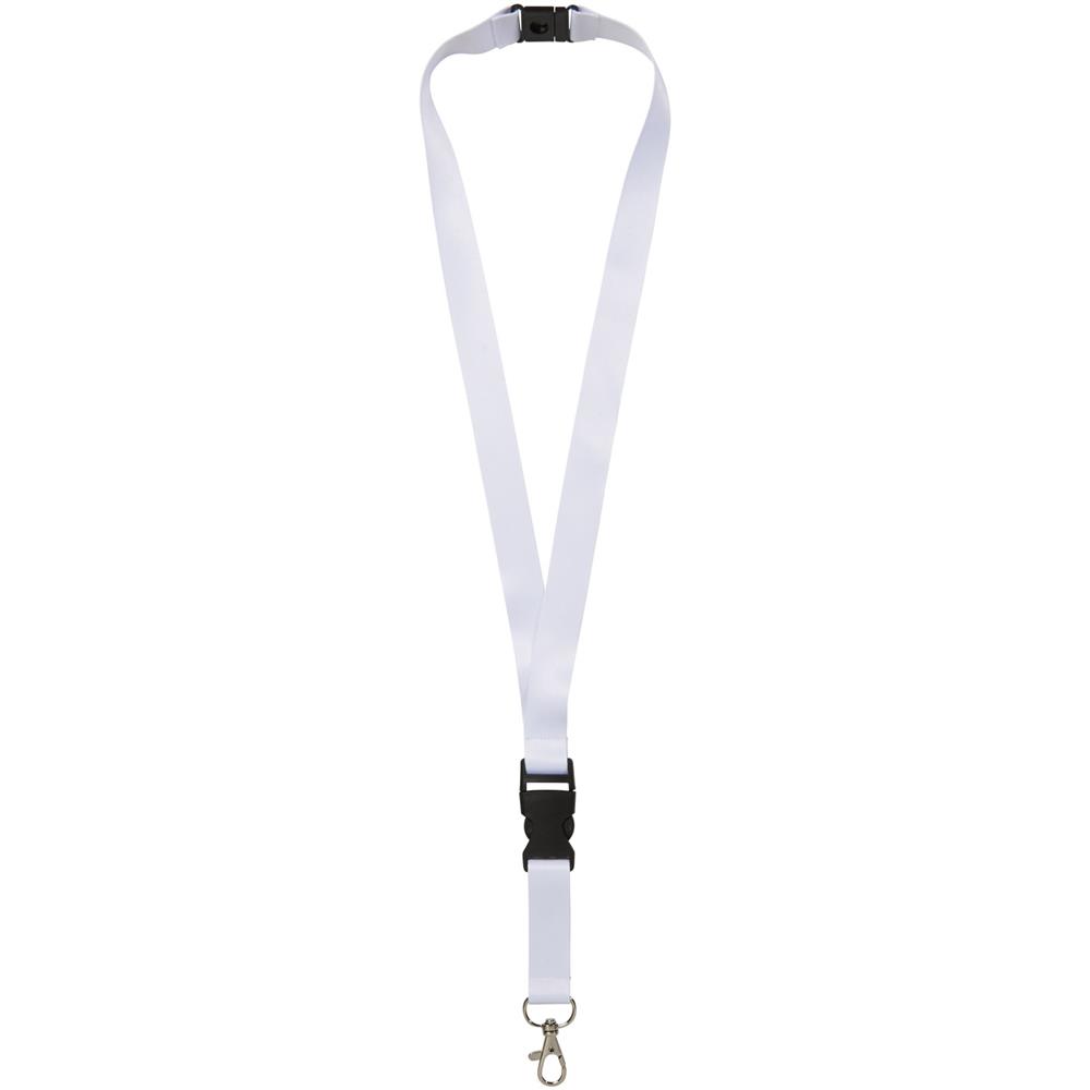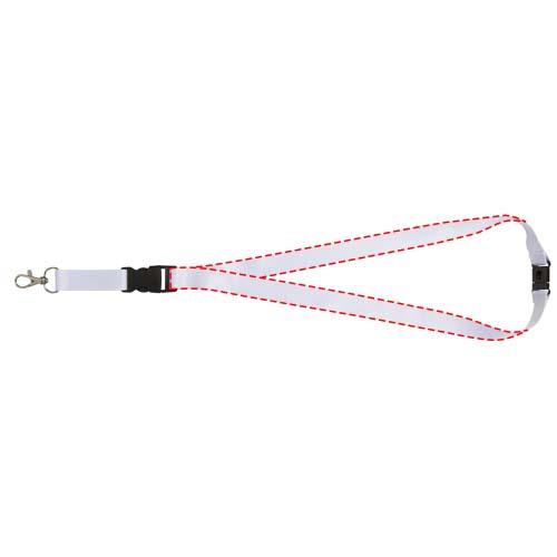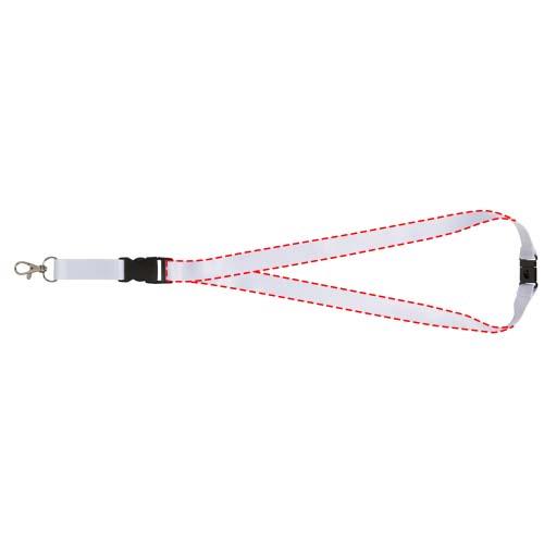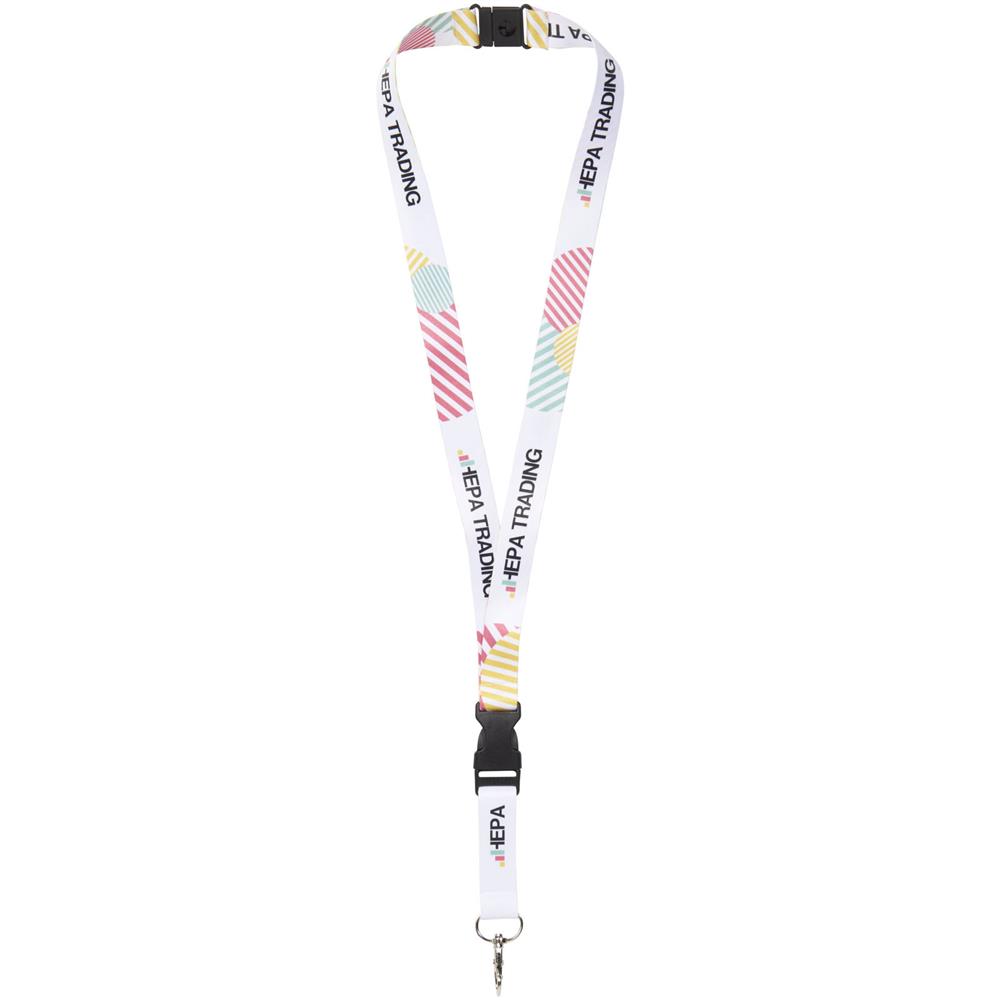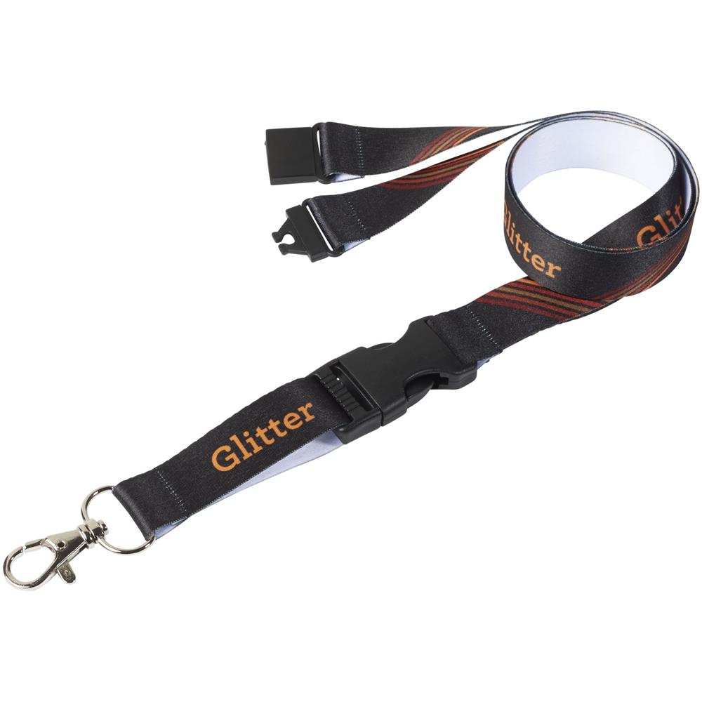 Balta vollfarbig bedrucktes Sublimation Lanyard. Der Druck ist ein- oder beidseitig möglich. Beim beidseitigen Druck können Sie zwischen der Standard- und der Fitted-Option wählen (Fitted bedeutet, dass der Druck auf beiden Seiten ausgerichtet ist). Das Lanyard hat einen Metallhaken, eine Kuststoffschnalle und einen Abreißverschluss. Kann ein Namensschild, einen Ausweis oder Schlüssel halten. Erhältlich in 4 verschiedenen Bandbreiten: 10, 15, 20 und 25 mm.