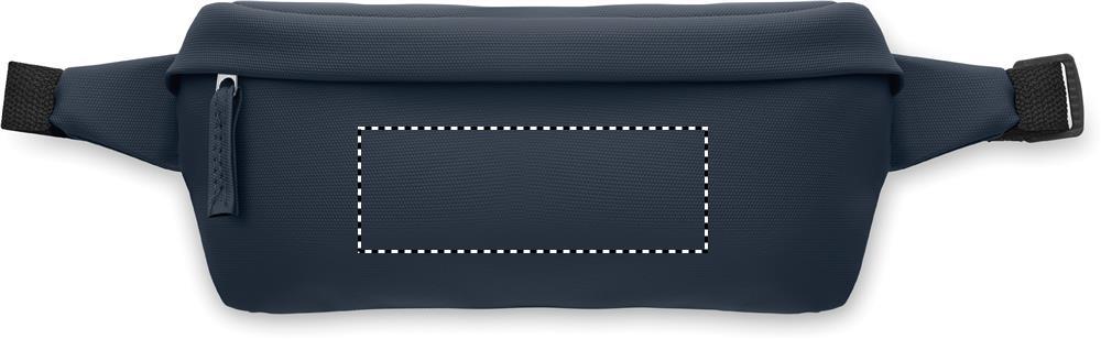 Gürteltasche aus PU-beschichtetem 600D RPET-Polyester und 210D RPET-Polyesterfutter. Fronttasche mit Reißverschluss.