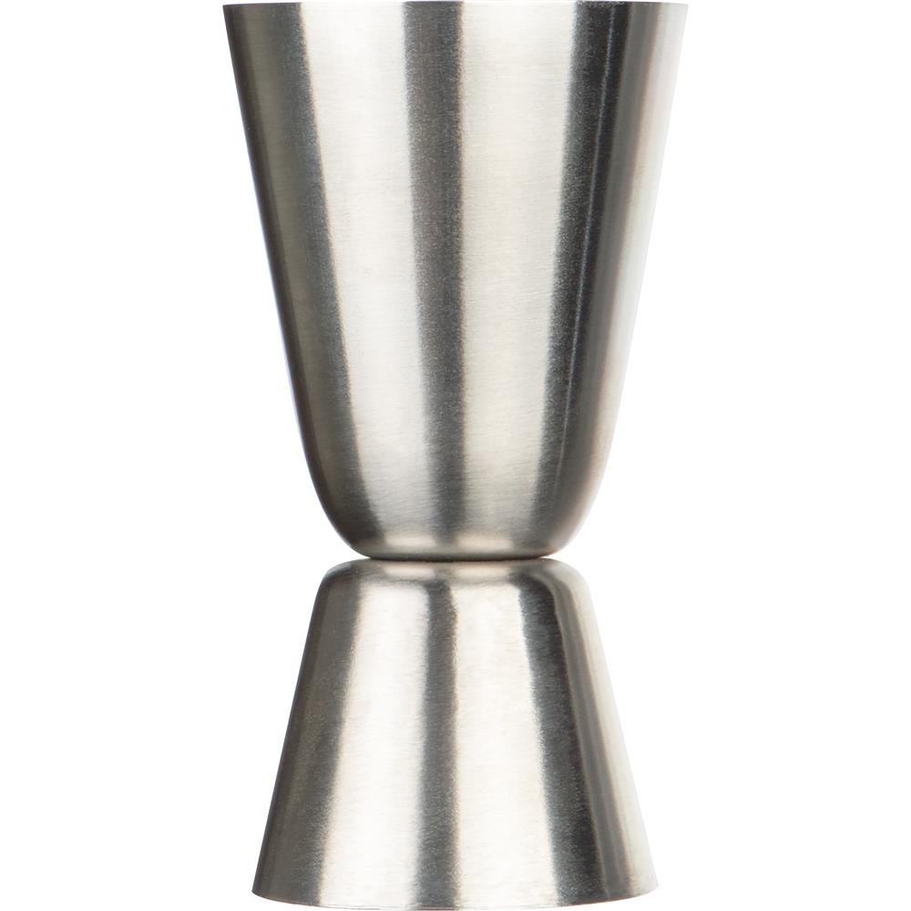 Barmaß für exaktes Dosieren in zwei Einheiten, 2cl und 4cl aus Edelstahl. Die Werbung wird auf das Barmaß graviert.