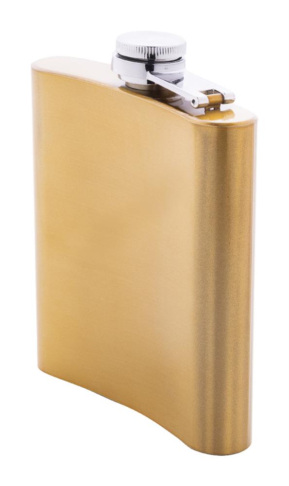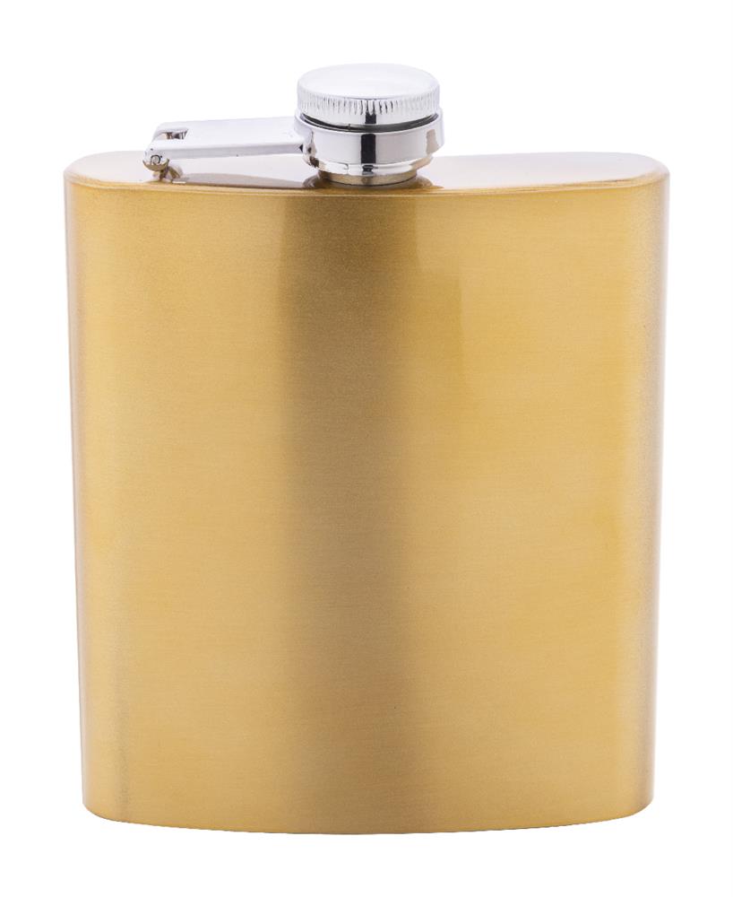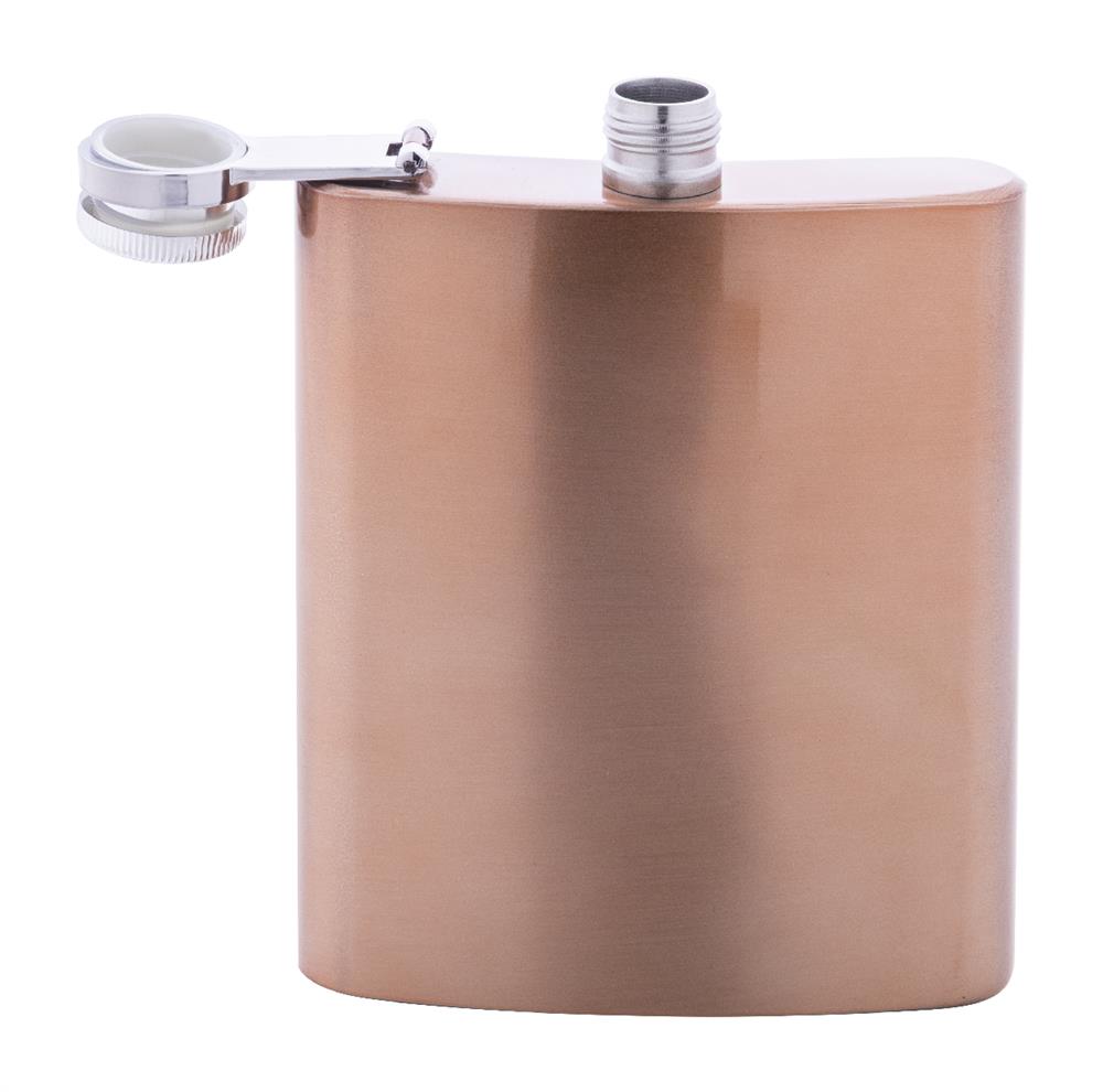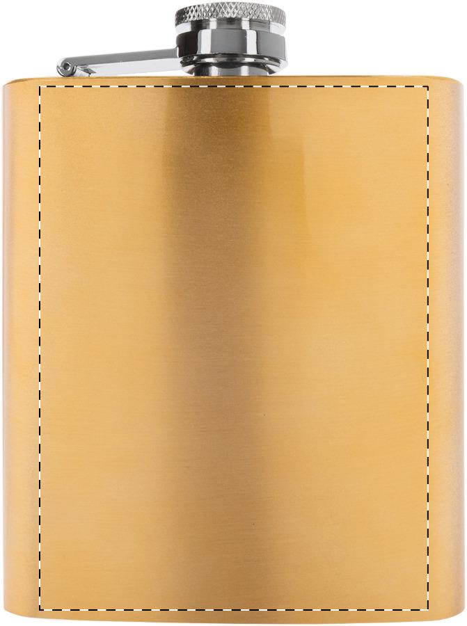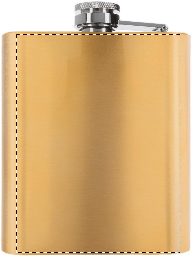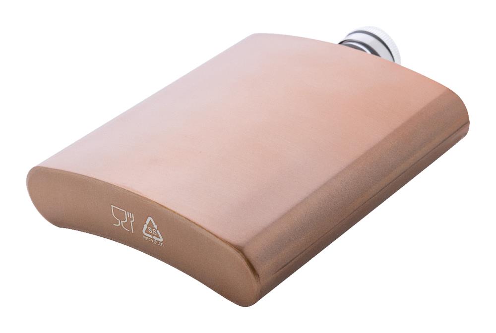 Flachmann aus recyceltem Edelstahl mit glänzendem Metallic-Finish. Füllmenge: 200 ml.