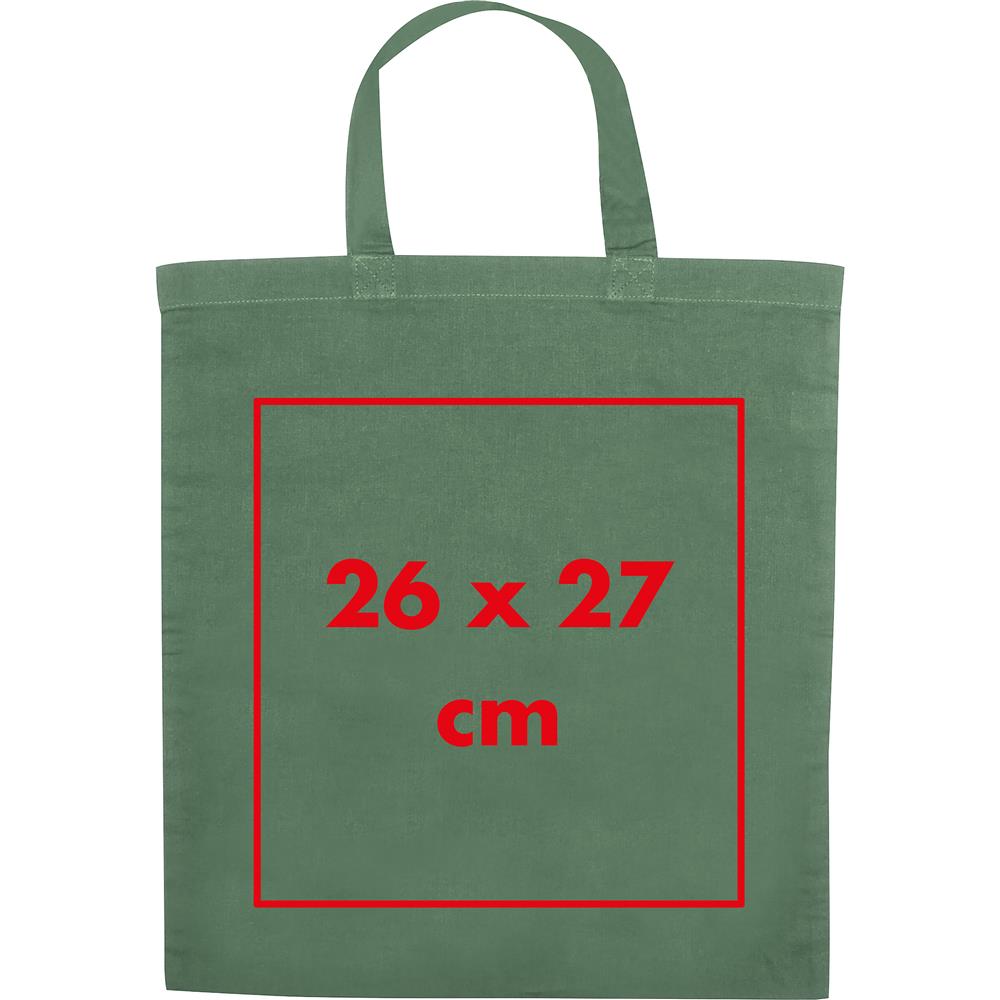 Oeko-Tex® STANDARD 100 zertifizierte Baumwolltasche mit kurzen Tragehenkeln und einer besonders festen Grammatur von 140g/m² in vielen verschiedenen Farben. Ihre Werbung wird auf eine Seite gedruck