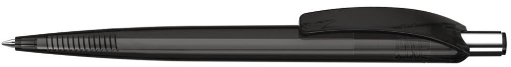 Druckkugelschreiber mit glänzend transparentem Gehäuse und Drückstopfen, Drücker in silber glänzend.
