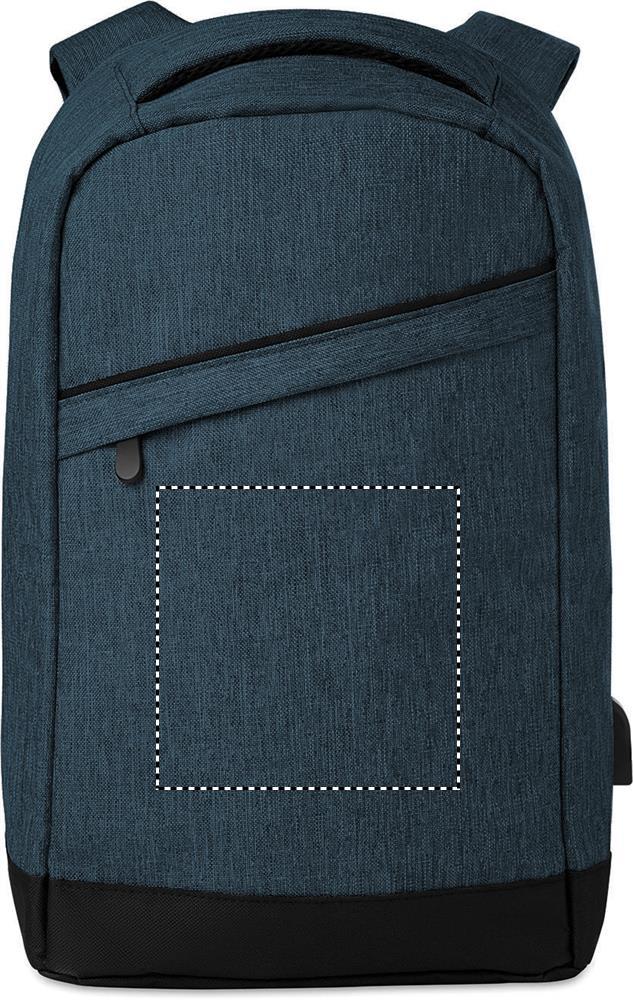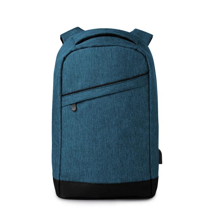 Rucksack mit großem Hauptfach. Inkl. 13 Inch Laptopfach und USB- Ladekabel. Rückseitiges Innenfach mit Reißverschluss für optimalen Schutz. Gepolsterte Schultergurte. 600D 2farbiger Polyester.