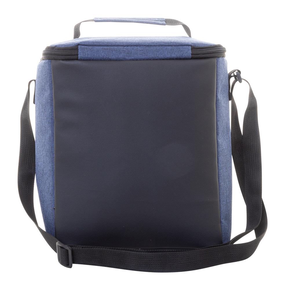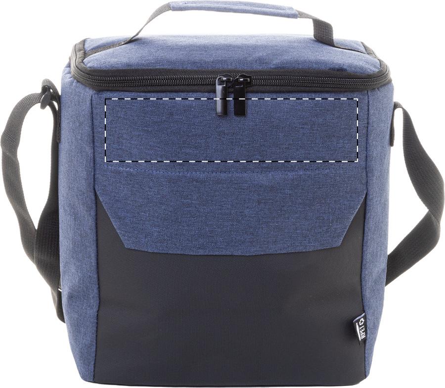Kühltasche mit Reißverschluss aus RPET mit PU-beschichteten Applikationen und PEVA-Polsterung. Mit Tragegriff, verstellbarem Schultergurt und kleiner Vordertasche. Material: 600D RPET-Polyester. Mit RPET-Label.