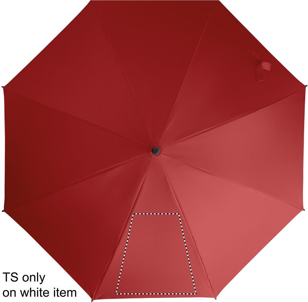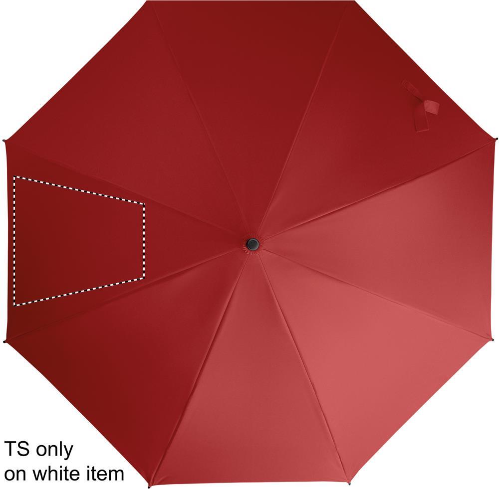 23'' Regenschirm aus 190T Pongee. Windbeständig. Stock und Stangen aus Fiberglas. Krone und Spitzen aus Kunststoff. Gebogener Griff aus gummiertem PP. Automatische Öffnung, manuelle Schließung.