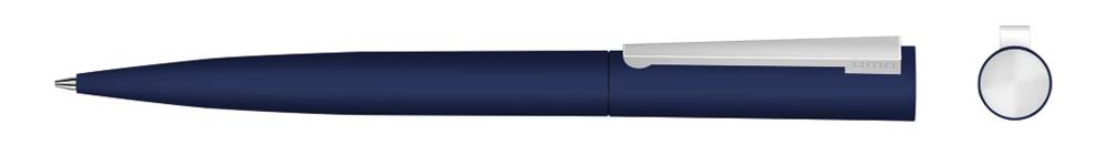 Metall-Drehkugelschreiber mit matt gummiertem farbigem Gehäuse, gefederter Metallclip und Stopfen matt verchromt.