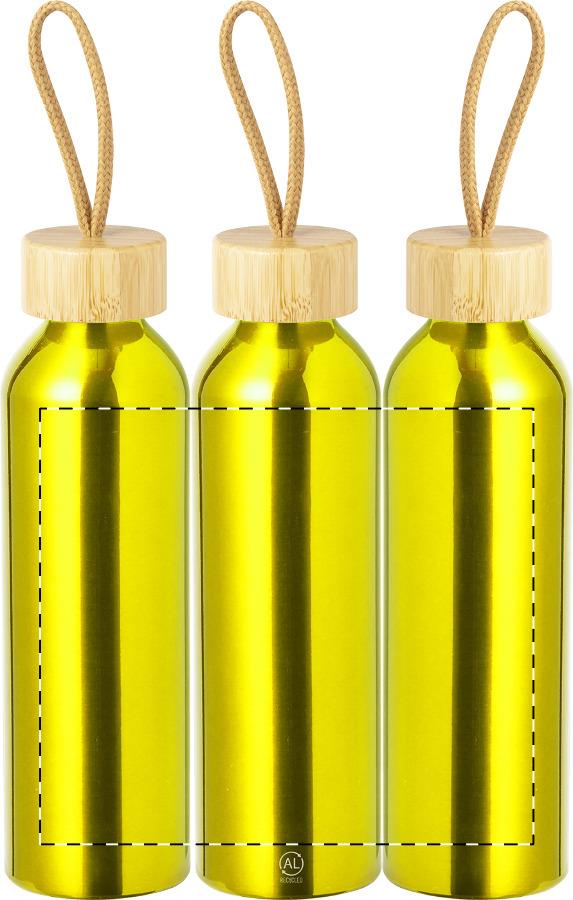 Trinkflasche aus recyceltem Aluminium mit Bambus-Tragedeckel. Füllmenge: 600 ml.