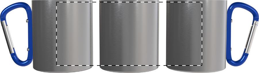 Edelstahlbecher mit farbigem Karabinergriff. Füllmenge: 200 ml.