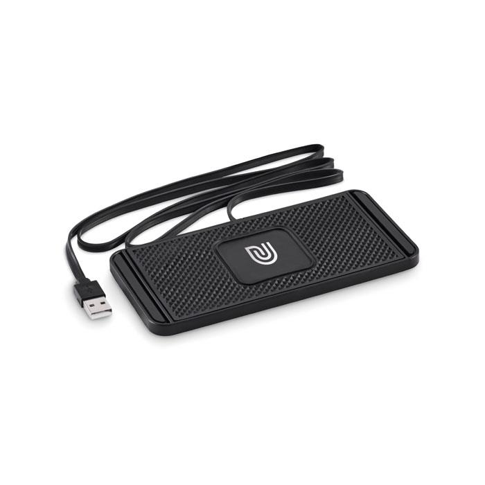 Kabelloses Kfz-Ladegerät 15W. Anti-Rutsch-Pad aus PVC. Anpassbar auf gewünschte Größe durch Zuschnitt der Kanten. Integriertes USB-A-Kabel, Länge 120 cm.