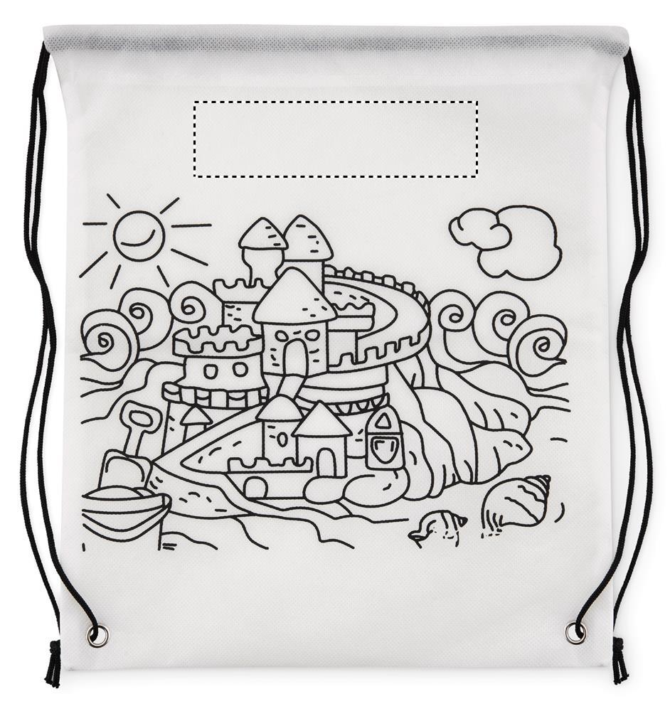 Gestaltbarer Non Woven Kordelzugbeutel. Mit 5 Filzstiften. 80 g/m². Nicht waschbar.
