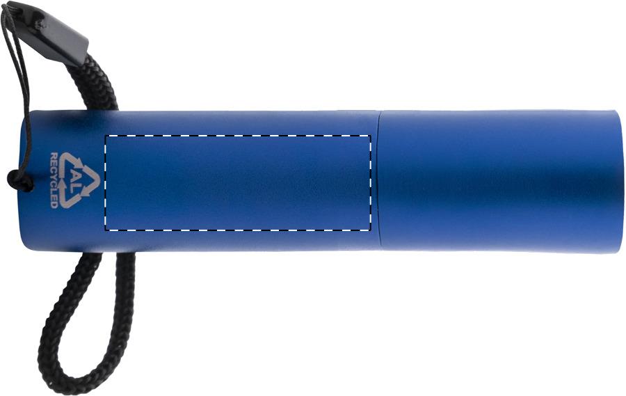 Taschenlampe aus recyceltem Aluminium mit integriertem, per USB aufladbarem Akku (400 mAh) und Trageschlaufe. Mit zoombarem Hochleistungs-COB-Licht und 3 Leuchtmodi. Inklusive USB-Ladekabel.