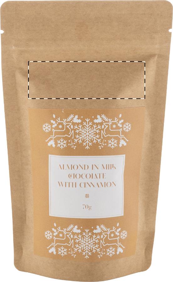 Mit Milchschokolade und Zimt überzogene Mandeln in einem Beutel aus natürlichem Kraftpapier. 70 Gramm.