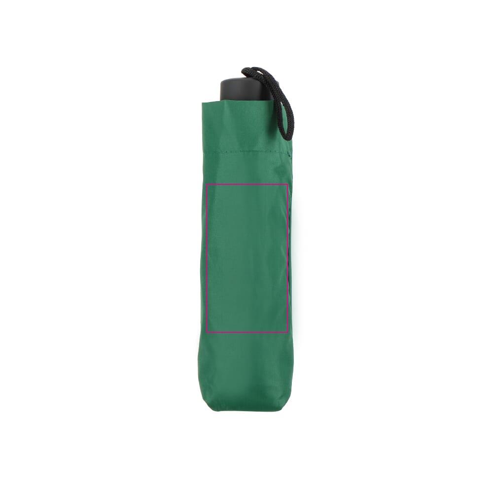 Kompakter Faltschirm mit einem Schirmdach aus 190T-Polyester, der für stürmische Bedingungen ausgelegt ist. Verfügt über einen PP-Griff und umfasst eine Hülle zur einfachen Aufbewahrung. Manuelles Öffnen und Schließen.