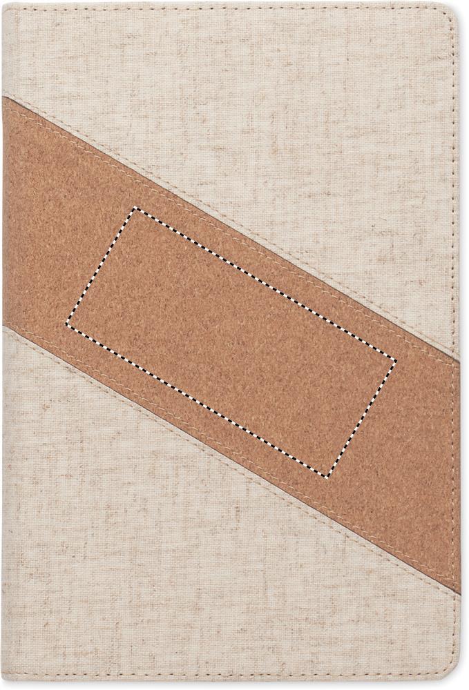 DIN A5 Notizbuch mit integriertem kabellosen 15W Ladegerät. Cover mit Details aus Baumwolle und Kork. 64 Blatt (128 Seiten) liniertes Papier. Lesebändchen.