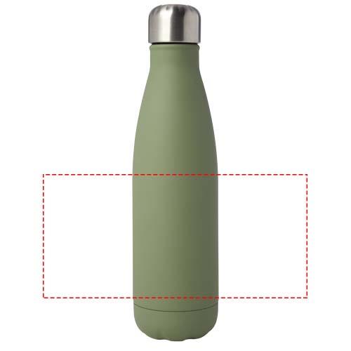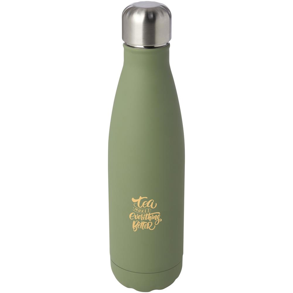 Vakuumisolierte, RCS-zertifizierte Flasche aus recyceltem Edelstahl mit kultigem Design. Mit einem Sockel, der in die meisten Getränkehalter passt, ist diese elegante Wasserflasche ein perfekter Werbeartikel. Geprüft und zugelassen nach deutschem Lebensmittelsicherheitsgesetz (LFGB) und gemäß REACH Verordnung auf Phtalate getestet. Das Fassungsvermögen beträgt 500 ml. Verpackt in einer Geschenkbox aus Recyclingkarton. Hält Getränke 12 Stunden heiß und 24 Stunden kalt.