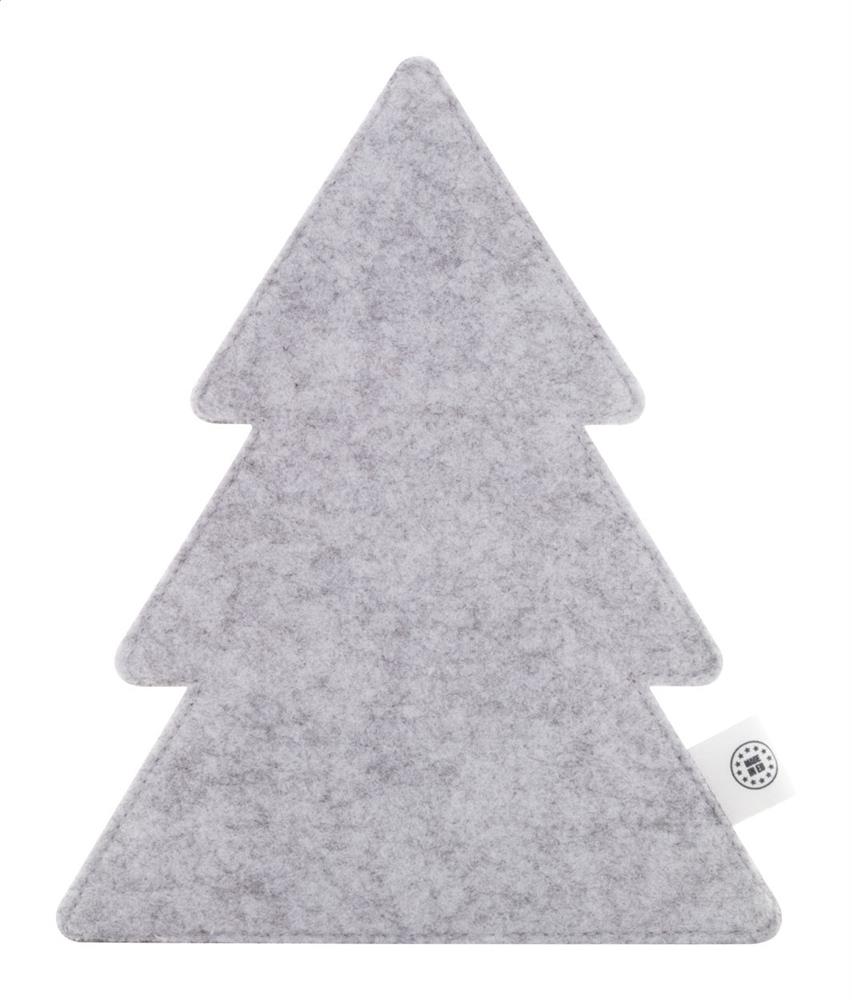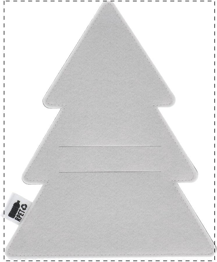 Individueller RPET Besteckhalter in Weihnachtsbaumform mit vollfarbiger Bedruckung auf der Vorderseite und RPET-Label. Der Preis ist inklusive Sublimationsdruck. Mindestmenge: 50 Stk.