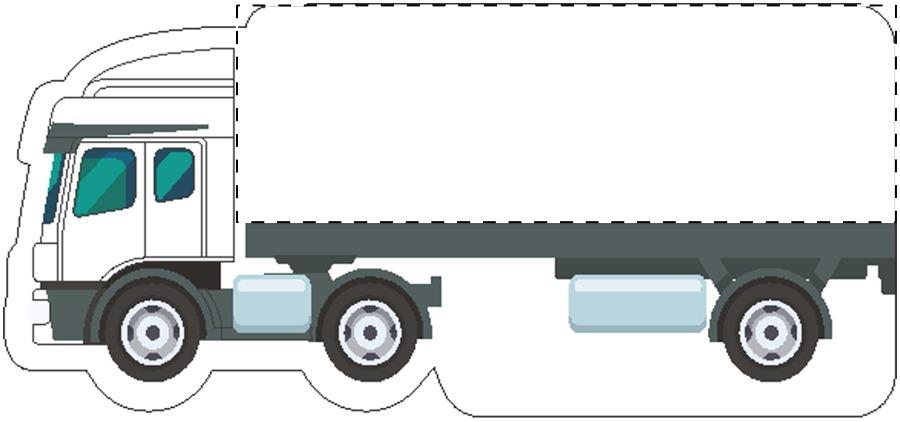 Individueller Kühlschrankmagnet in LKW-Form mit Vollfarbdruck und Haftnotizblock. Beinhaltet 50 Haftnotizen aus Recyclingpapier (75x75mm). Mindestmenge: 100 Stk.