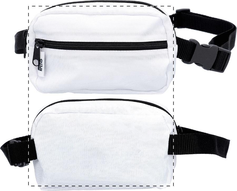 Individuelle Gürteltasche mit Reißverschlussfach und Vordertasche aus 600D RPET-Polyester. Der Preis ist inklusive vollfarbigem vollflächigem Sublimationsdruck. Mindestbestellmenge: 25 Stk. Mit RPET-Label.