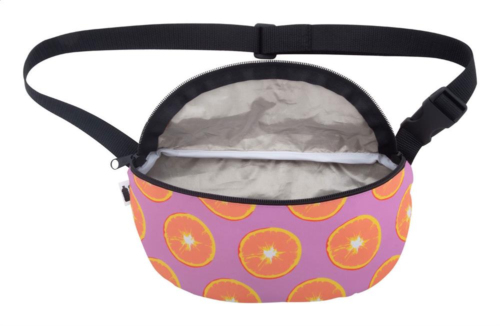 Individuelle Gürteltasche mit Reißverschlussfach und Fach mit RFID-Schutz, Material: 600D RPET Polyester. Der Preis ist inkl. Sublimationsdruck und RPET-Label. Mindestmenge: 25 Stk.