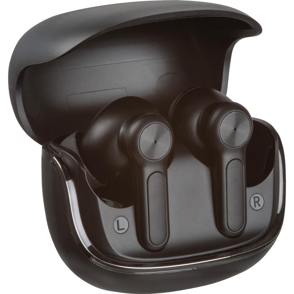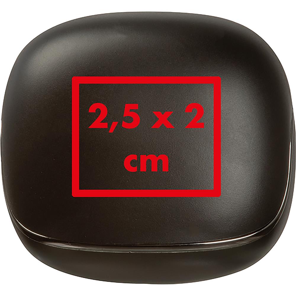 CrisMa Bluetooth In-Ear-Kopfhörer (40mAh) mit aufladbarem Case (500mAh). Aufgeladen haben sie eine Spielzeit von bis zu 6h. Bluetooth Verion 5.4. Ihre Werbung drucken wir auf das Case.