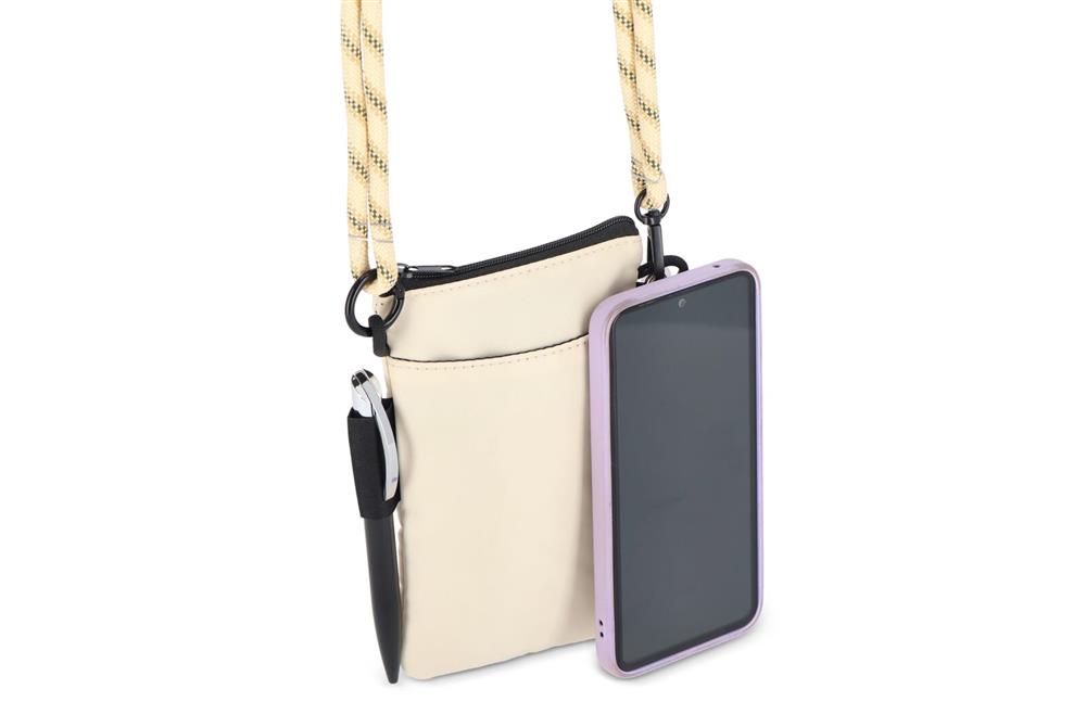 Diese kompakte Crossbody Tasche ist ideal fürs Telefon, Schlüssel und Brieftasche. Eine Schlaufe hält sicher einen Stift, während das Paracord-Band einen einzigartigen Touch verleiht. Das Design kann mit der mitgelieferten Lasche in ein Handykette umgewandelt werden, um die Hände frei zu haben.