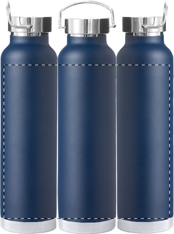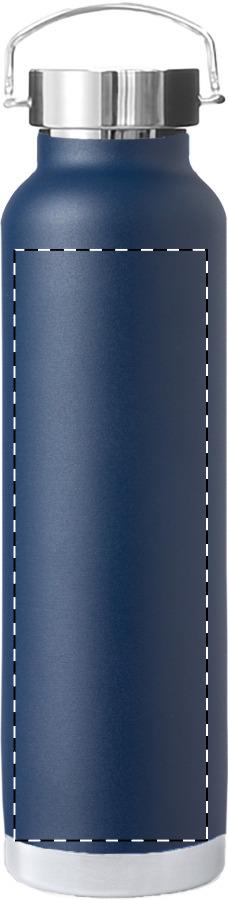 Doppelwandige, kupferisolierte Vakuumflasche aus Edelstahl mit Tragedeckel. Füllmenge: 650 ml. Die Kupferisolierung hält Getränke ca. 12 Stunden lang heiß und ca. 24 Stunden lang kühl.