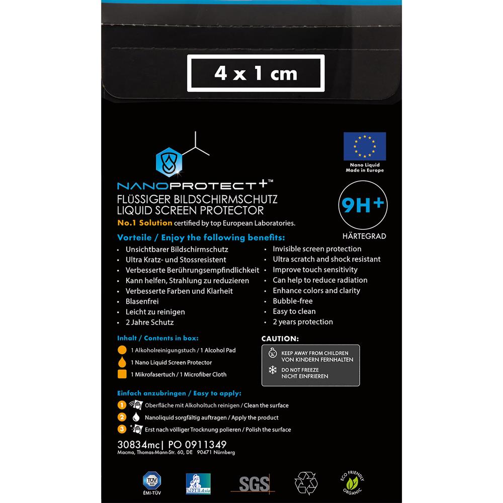 Flüssiger Displayschutz für Smartphones, Smartwatches und Tablets. Die flüssige Glasversiegelung macht Ihr Display um ein Vielfaches widerstandsfähiger als eine Schutzfolie und ist komplett unsichtbar. Ihre Werbung bringen wir per Etikett auf der Rückseite der Verpackung an.