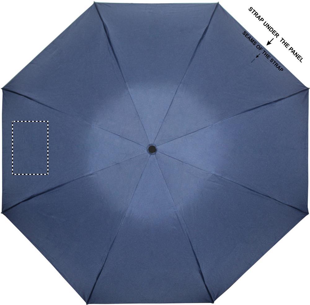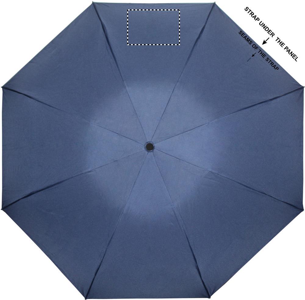 23'' reversibler Regenschirm aus 190T Pongee. 3fach gefaltet. Chromfarbig überzogener Stock aus Stahl. Schienen aus Fiberglas. Schwarzer Griff aus ABS. Inklusive passende Schirmhülle. Automatische Öffnung und Schließung per Knopfdruck.
