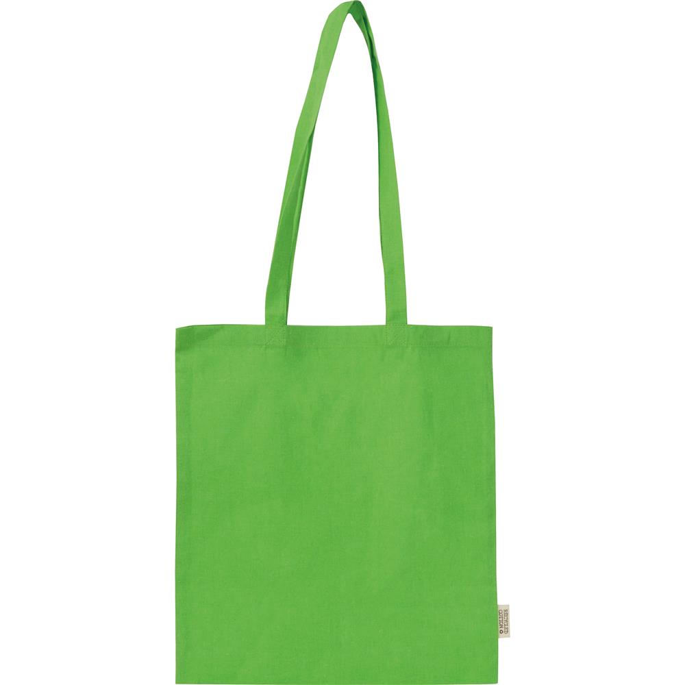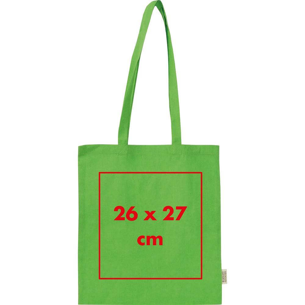 Baumwolltasche aus 75% recycelter Baumwolle und 25% recycelten Kunststoffen (rPET) mit langen Tragehenkeln und einer besonders festen Grammatur von 180g/m². Ihre Werbung wird auf eine Seite gedruckt.