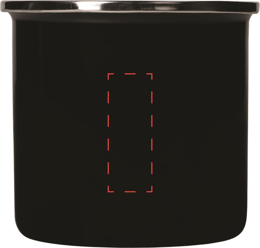 Stylischer Retro-Stahl-Kaffeebecher mit Emaille-Beschichtung und einem Tassenrand aus Edelstahl. Außenfarbe: schwarz. Innenfarbe: weiß. Füllmenge: 0,3 Liter.