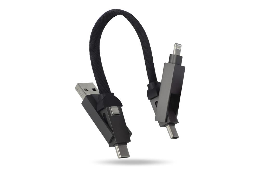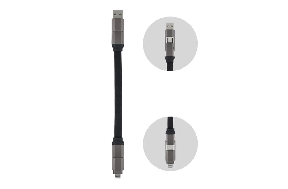 Dieses vielseitige Kabel bietet USB-A- und USB-C-Eingänge sowie USB-C- und Lightning-Ausgänge. Es unterstützt PD und QC und ist aus langlebigem, geflochtenem Nylon. Der Magnetverschluss sorgt für Ordnung – ideal für unterwegs.