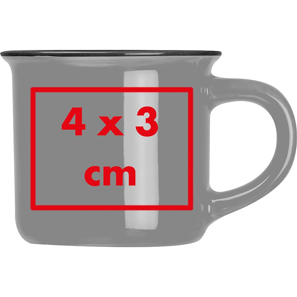 Nostalgie - Espressotasse aus Keramik mit schwarz abgesetztem Rand und einem Füllvermögen von 60ml. Ihre Werbung wird auf der Tasse angebracht.