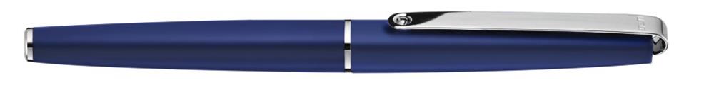 Metall-Rollerball mit glänzendem Gehäuse, langem, flexiblem Metallclip, Zierring und Stopfen glanzverchromt. Griffzone gerillt in glanzchrom.