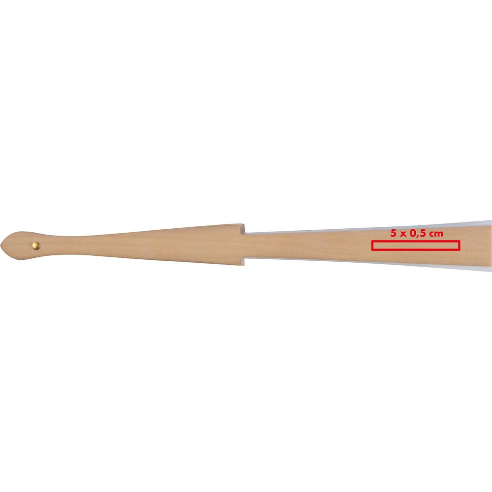 Fächer mit Griff aus Holz und Polyesterbespannung. Ideal für warme Sommertage. Ihre Werbung wird auf den Griff gedruckt.