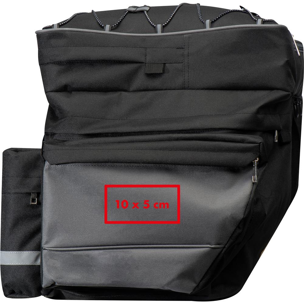 Hochwertige, große Fahrradtasche für den Gepäckträger. Mit vielen Funktionen wie elastischen Bändern und mehreren Fächern zum verstauen. Ihre Werbung drucken wir auf die Tasche.