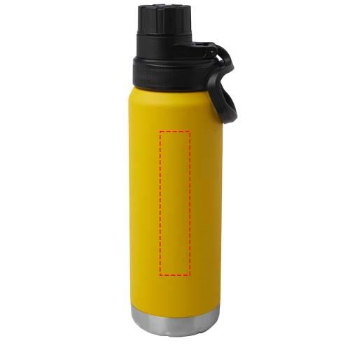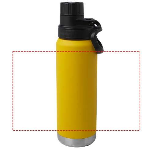 RCS-zertifizierte, vakuumisolierte Trinkflasche aus doppelwandigem Kupfer-Edelstahl mit auslaufsicherem Deckel. Die weite Öffnung erleichtert das Befüllen und Reinigen, und der praktische Tragegriff ist in den Deckel integriert. Geeignet für kohlensäurehaltige Getränke. Die Außenseite der Flasche ist mit einer langlebigen Pulverbeschichtung versehen. Verpackt in einer Geschenkbox aus recyceltem Karton. Fassungsvermögen: 700 ml.